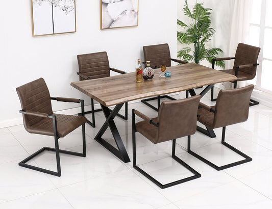 Faux Live Edge 7 Pc Wood Dining Set w Charcoal Brown PU Chairs