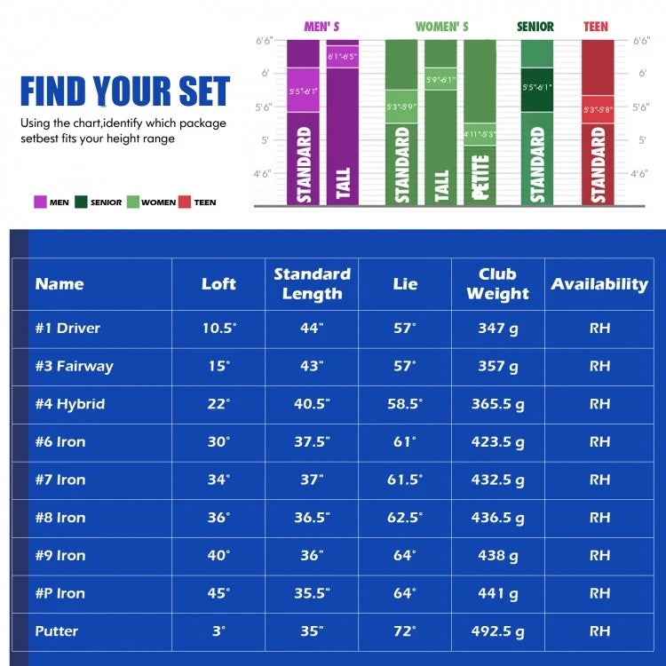 - Complete Set: Includes driver, fairway wood, hybrid, 4 irons (6-9), and putter. Suitable for right-handed golfer. Note: golf bag not included.