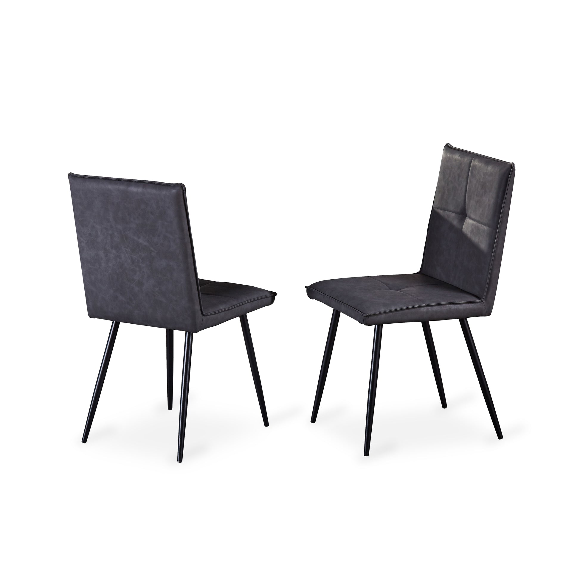 Give your dining area a boost of contemporary style with these stunning dining chairs. Chairs include light tufting and are draped in soft grey air suede fabric. 2 per box.